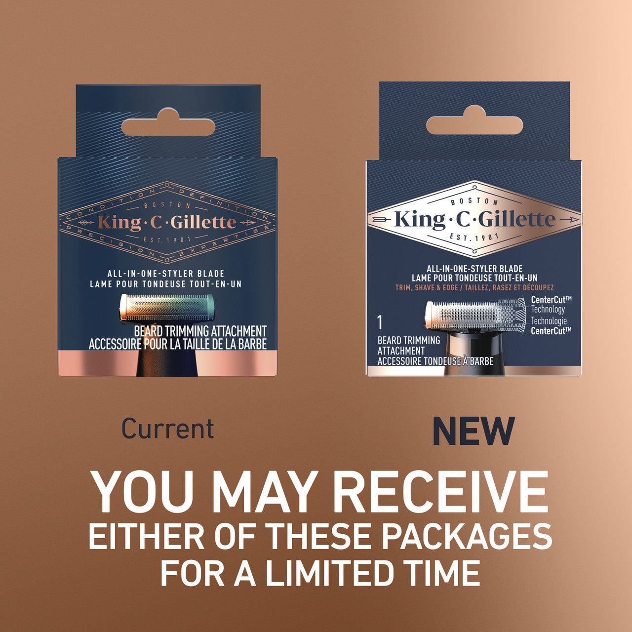 King C. Gillette All-in-one Styler Blade Refill is the compatible refill for the multifunctional All-in-one Styler, a versatile professional groomer that is suitable for edging and trimming any beard style of any length. The blade refill is made with new CenterCut technology for ultimate efficacy and closeness to ensure a smoother, more seamless trim or shave. With this technology, the King C. Gillette All-in-one Styler Blade refill blades have more cutting holes in the middle and more cutting power. They work with an upward and downward movement which allows you to move along the contours of your face to achieve the beard look and style you desire.