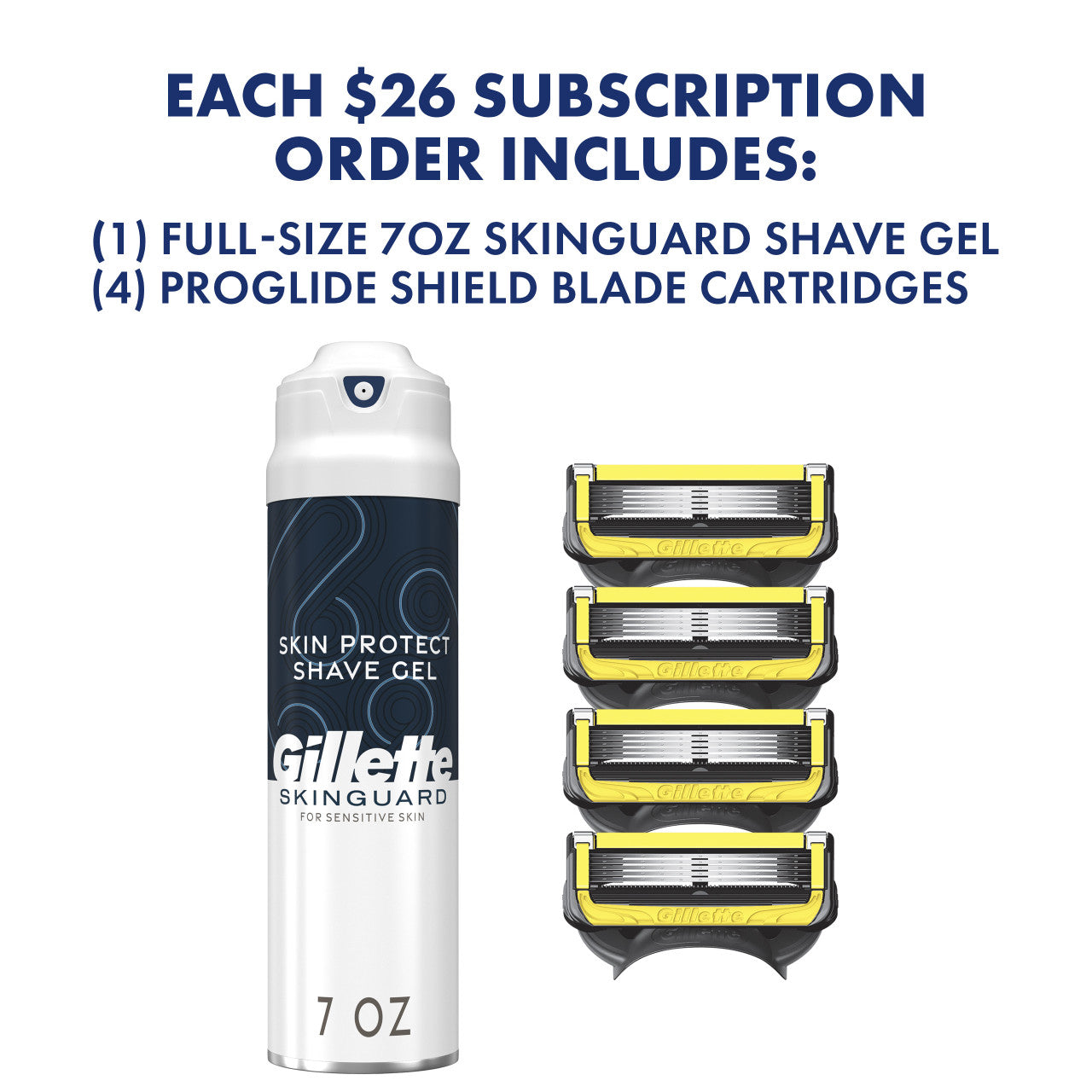 After two weeks, you'll receive your first box of four new blades and full-size Gillette Skin Ultra Sensitive Shave Cream. All future shipments will arrive based on your chosen subscription frequency and ship for free.